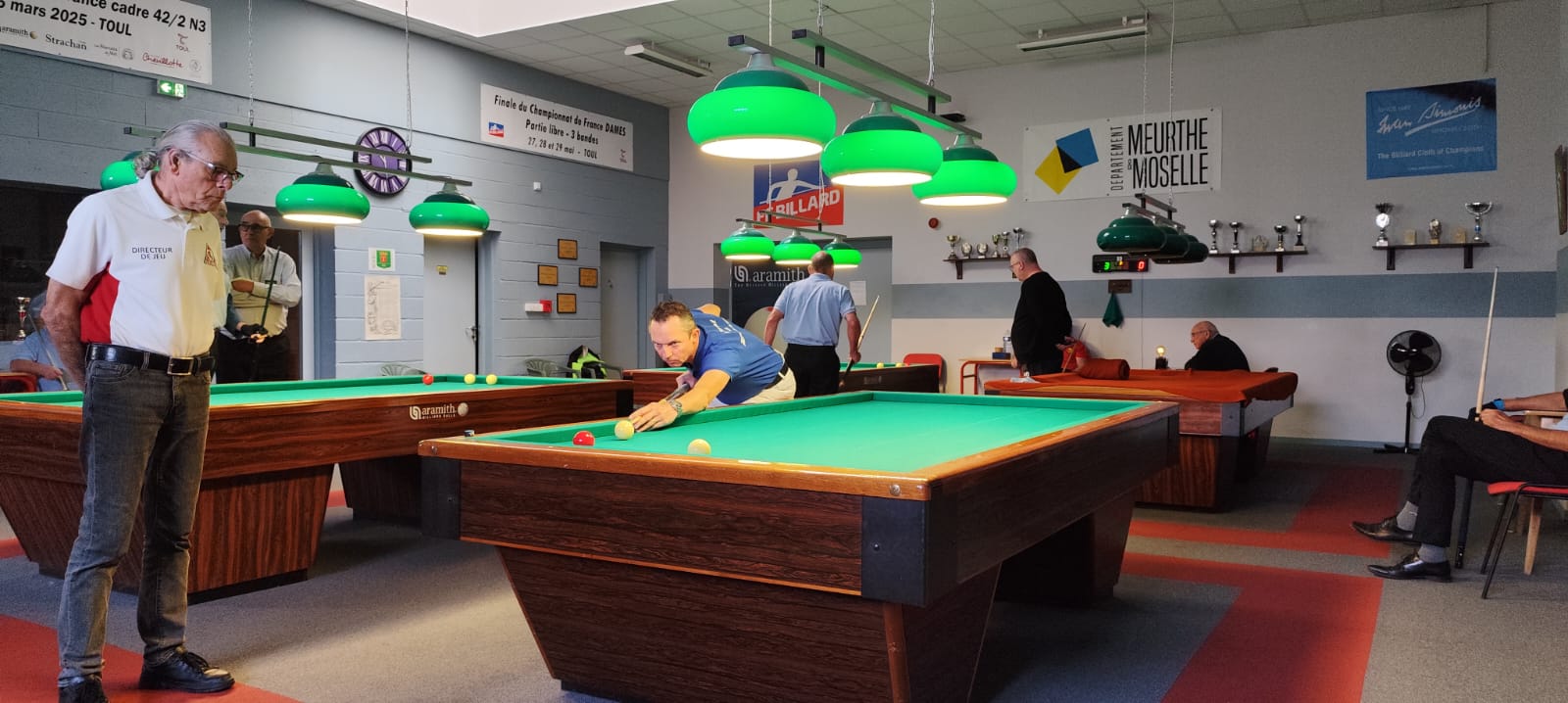- Le billard utilisé est un billard de 2.80 m. La distance normale est de 80 points en 25 reprises.